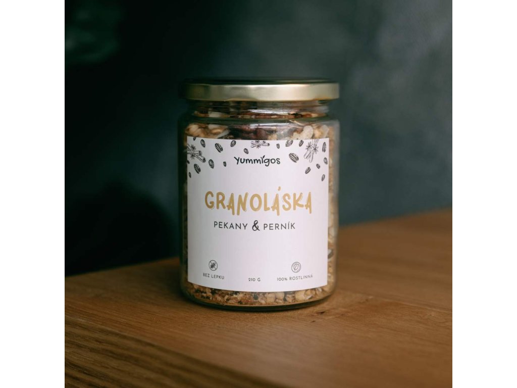 Granoláska je pro všechny slaďouše a milovníky křupavých oříšků, semínek a perníkového koření. U nás v Yummigos věříme, že si každý občas rád zamlsá. Všeobecně terorizovaný bílý cukr, který nám může způsobovat roztříštěnost, výkyvy nálad a složité zdravotní problémy u nás ovšem nenajdete. Myslíme na vás a díky tomu si můžete skvěle zamlsat bez výčitek.